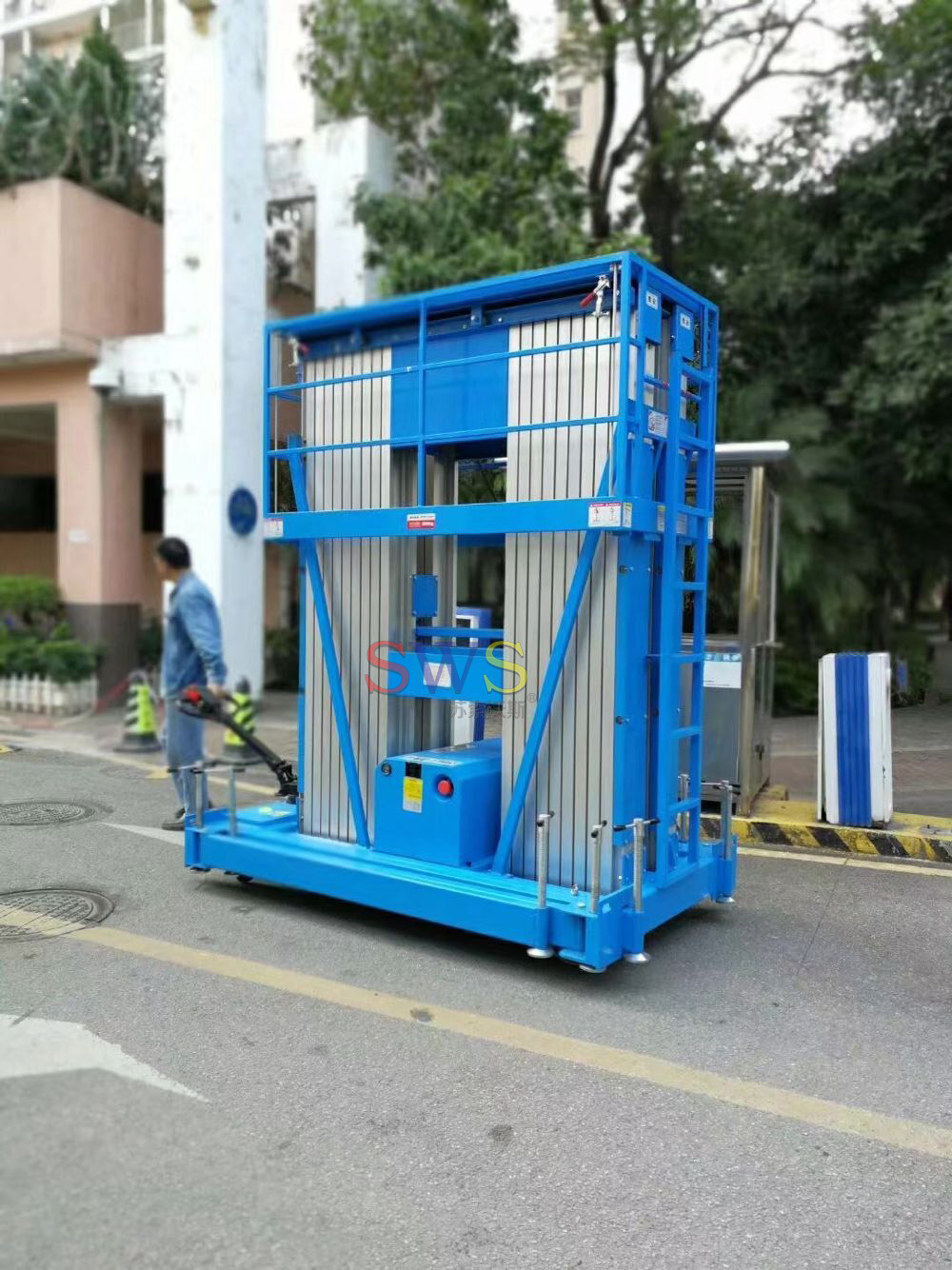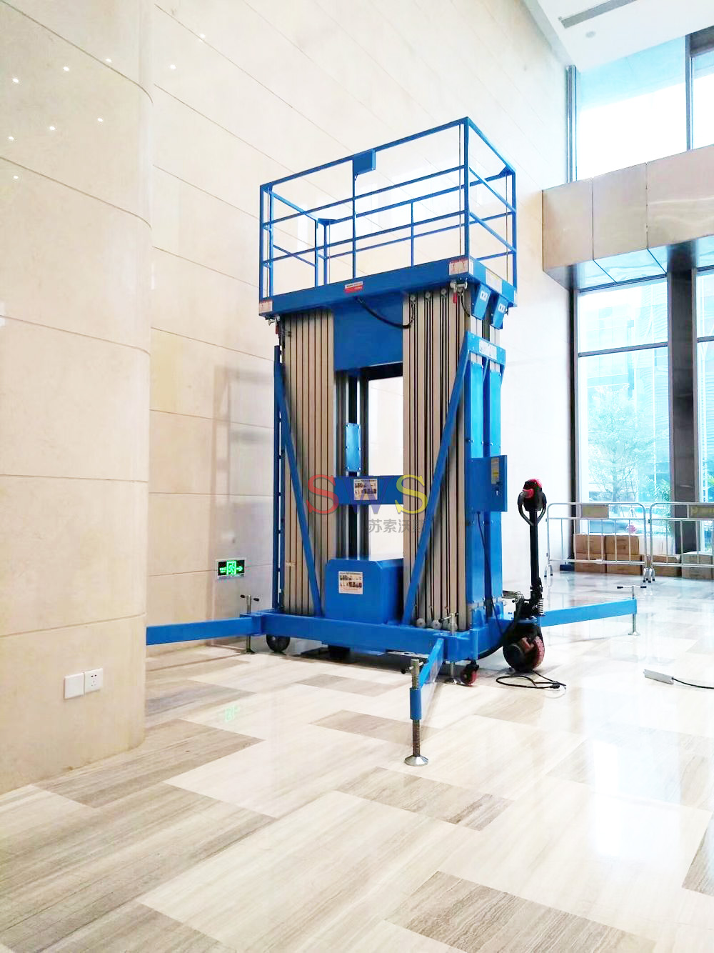 液壓起升,設有緊急下降閥裝置,具有輕便、靈活的特性,適用單人作業(yè)。